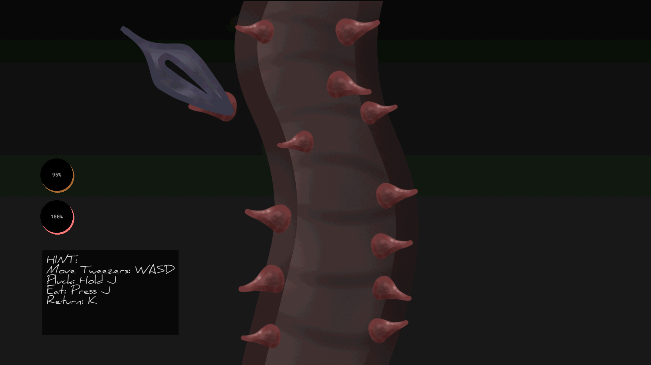 Food: Pick the thorns off by holding J to pluck them. Put all of them off to the side and then chow down!